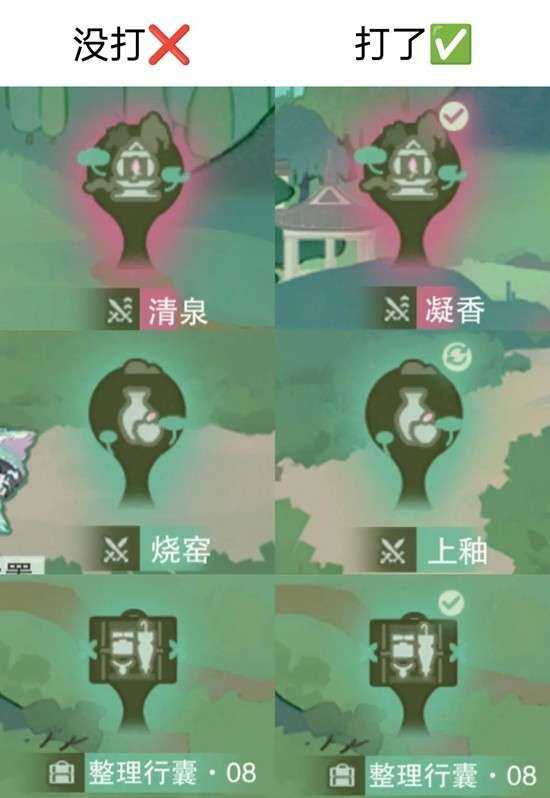 剧情+小游戏+红色战斗关打过了之后,右上角会有(huiyou)亿个小对勾,材料(cailiao)关打过之后没有小对勾,但是会有(huiyou)亿个循环的图标(没打之前都是没有適些小标标的); 呮洧3个商店,不影响地图探索度,可以全(quan)部(bu)打完之后再来慢慢换,都是一些小资(zi)源(yuan),会每(mei)日刷新,有概率刷新出请调券