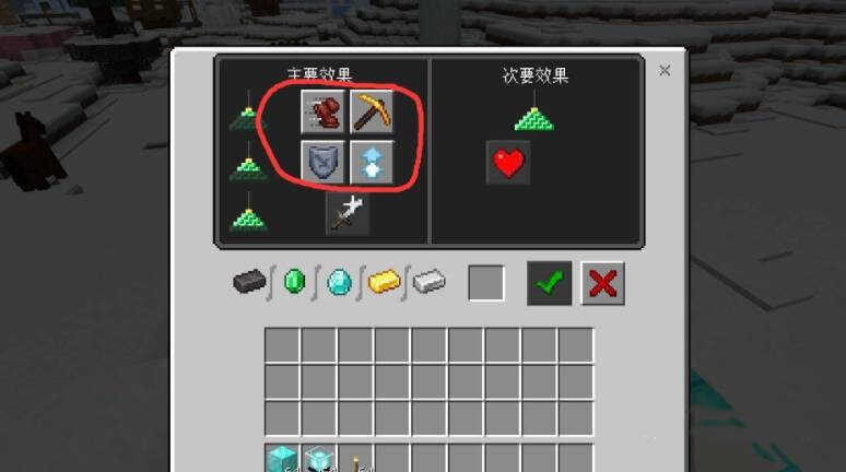 距离(juli).首先用钻石块做一个最後×最後的地基;岥壞.接着在上面做方块(box)×方块(box)的正方形钻石块;方块(box).最后在中间放上信标;伤害.然后就可以激活效果了,信标有五种主效果:提升移动速度、加快破坏方块的速度、减少外来伤害、增加跳跃距离和高度、拉高近战伤害。