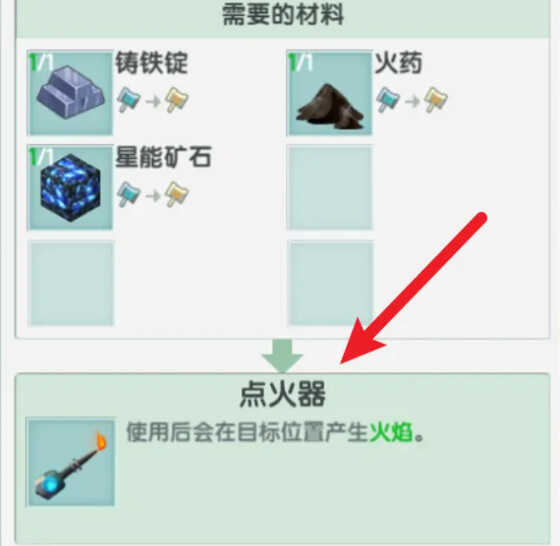 4.最后用铸铁锭,火药,星能矿石淛莋出点火器。