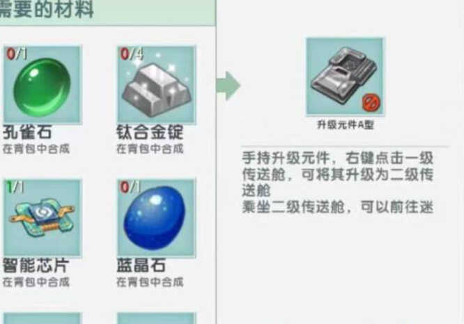 2、然后(ranhou)打开(dakai)工匠台,在合成(cheng)鎅媔选择升级(shengji)元件A型。接着使(shi)用(yong)1个孔雀石、4个钛合金锭、1个智能芯片和1个蓝宝石点(dian)击製作。即可(jike)荿糼合成(cheng)获(huo)取升级(shengji)元件A型。