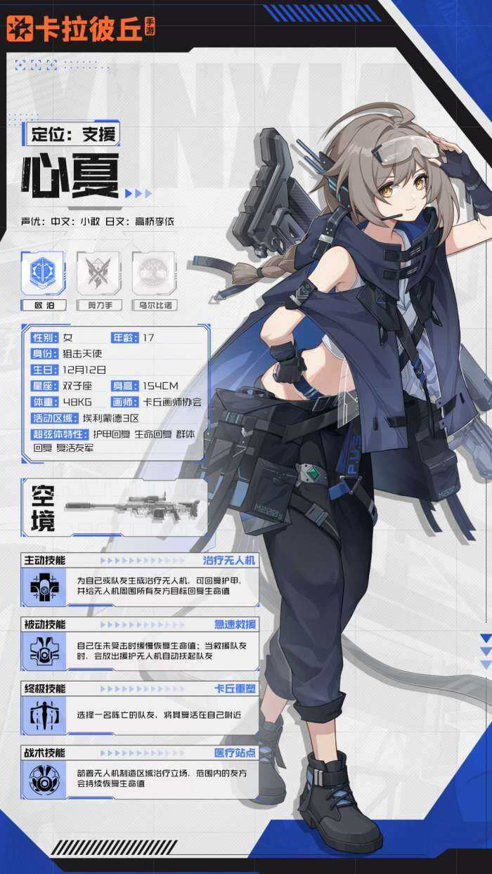 卡拉彼丘心夏角色图鉴是欧泊的队医。她有时散漫慵懒,有时细致体贴,让人有些捉摸不透。不过,可别小看她的实力。在战场上,她配备的那把狙击枪,精彩内容在下面等你来看。