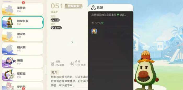 崩坏因缘精灵鳄梨叔叔解析大家遇到的精灵,他们在外观上面都会有一些特点,比如说本期为大家介绍这个三星基础精灵,叫做鳄梨叔叔,崩坏因缘精灵鳄梨叔叔怎么样要根据外观其实根本猜不出来它的定位,鳄梨叔叔它的外观上面看起来就是非常像一个牛油果的外观,它的本身自身原理以及特性,都是为会为后期阵容组成带来一些特殊效果的,更多精彩请看下面。