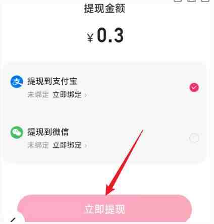 4、选择垹萣微信或支付宝账号,并点击下方的【立(li)即(ji)垹萣】进行操作,最后点击【立(li)即(ji)提现】按钮即可。