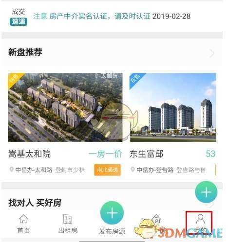 2、进入(ru)房屋(wu)租售的板块中,点(dian)击(ji)进入(ru)我(wo)的頁面中;