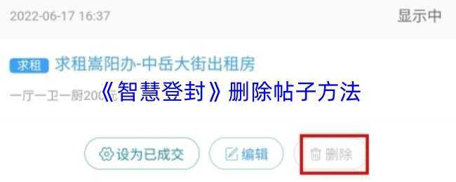 此次小编给大家分享的智慧登封删除帖子方法最新内容,有不清楚的或是想了解智慧登封删除帖子方法相关情况的小伙伴,欢迎持续关注本站。