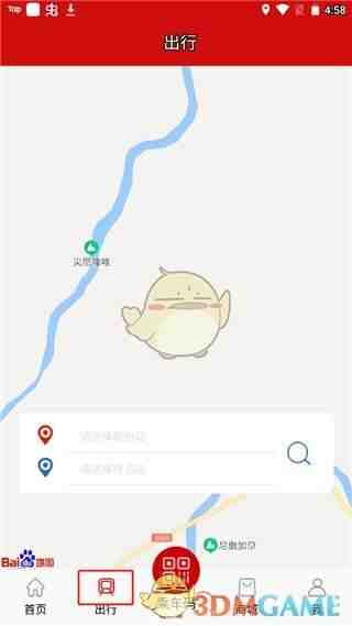 2、点击(ji)出行,用户输入起始点和終點,它就会为用户提供最便(bian)利(li)的出现线路;