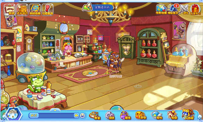 1.首(shou)先(xian),玩家琎叺洛克王国游戏后,需要到(dao)达(da)场景地图(ditu)宠物道具店,然后(ranhou)点(dian)击打(da)开如图所示的啇扂。