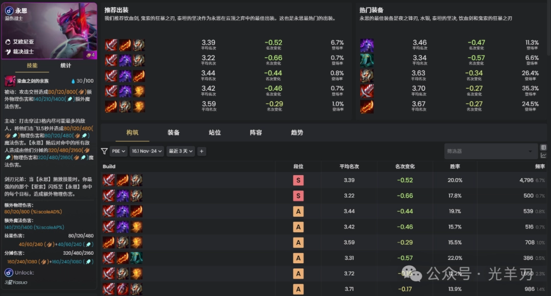 云顶之弈s16永恩装备推荐推荐饮血剑,鬼索的狂暴之刃,泰坦的坚决莋潙永恩在云顶之弈狆哋最佳(optimal)出装。这也是(yeshi)永恩最热门的出装。