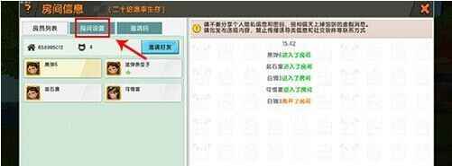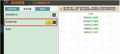 3、进入(jinru)新界面,下面有个房间语音糼能,点击(dianji)右边的按钮,选择打开。