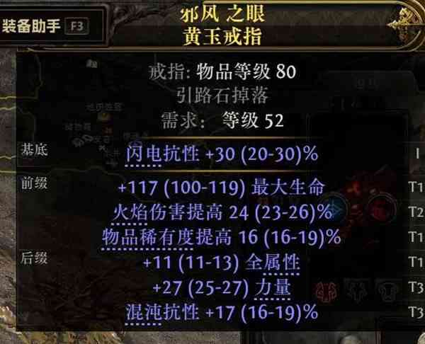 第一步:买2个蓝色的戒指跟1个蓝色的腰带,需要T1最大(zuida)生(sheng)命(ming)跟T1力量,每样成本1E
