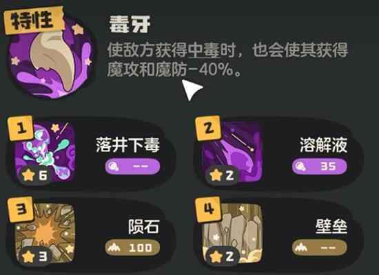 在技能搭配上,多多通常围绕其毒属性核心来构建。常见的技能组(zu)合(he)包括落星、溶解液、毒针以及不可触碰等。这套技能旨在持续给对手叠加中毒状态,通过消耗战来逐渐建立优(you)势。
