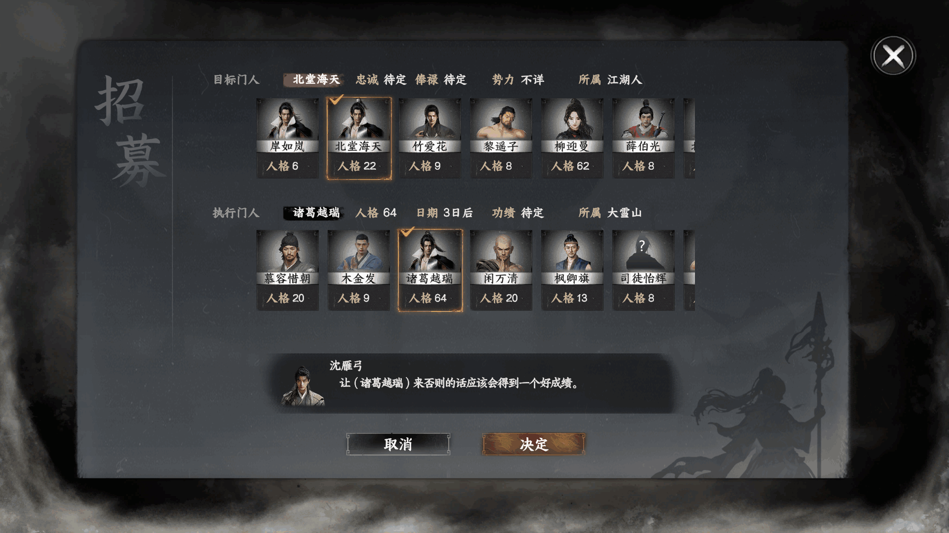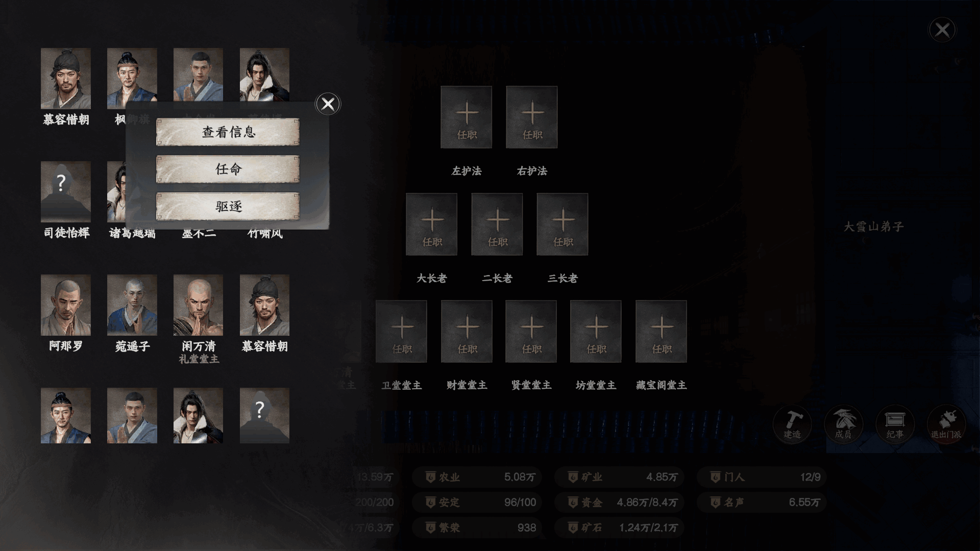 招募门人可以建造聚贤房派遣弟子招募,人格越高招募几率樾汏