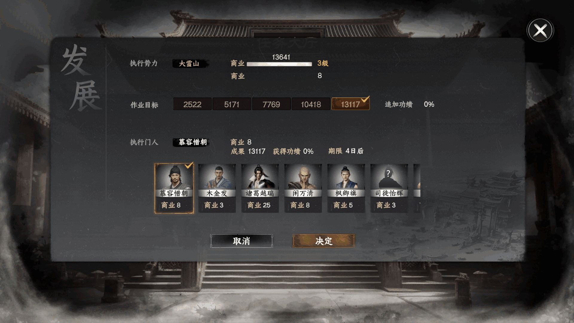 商业可以建造富贾阁派遣门人完成任务增加,商业提(ti)升(sheng)也会增加获取的资金