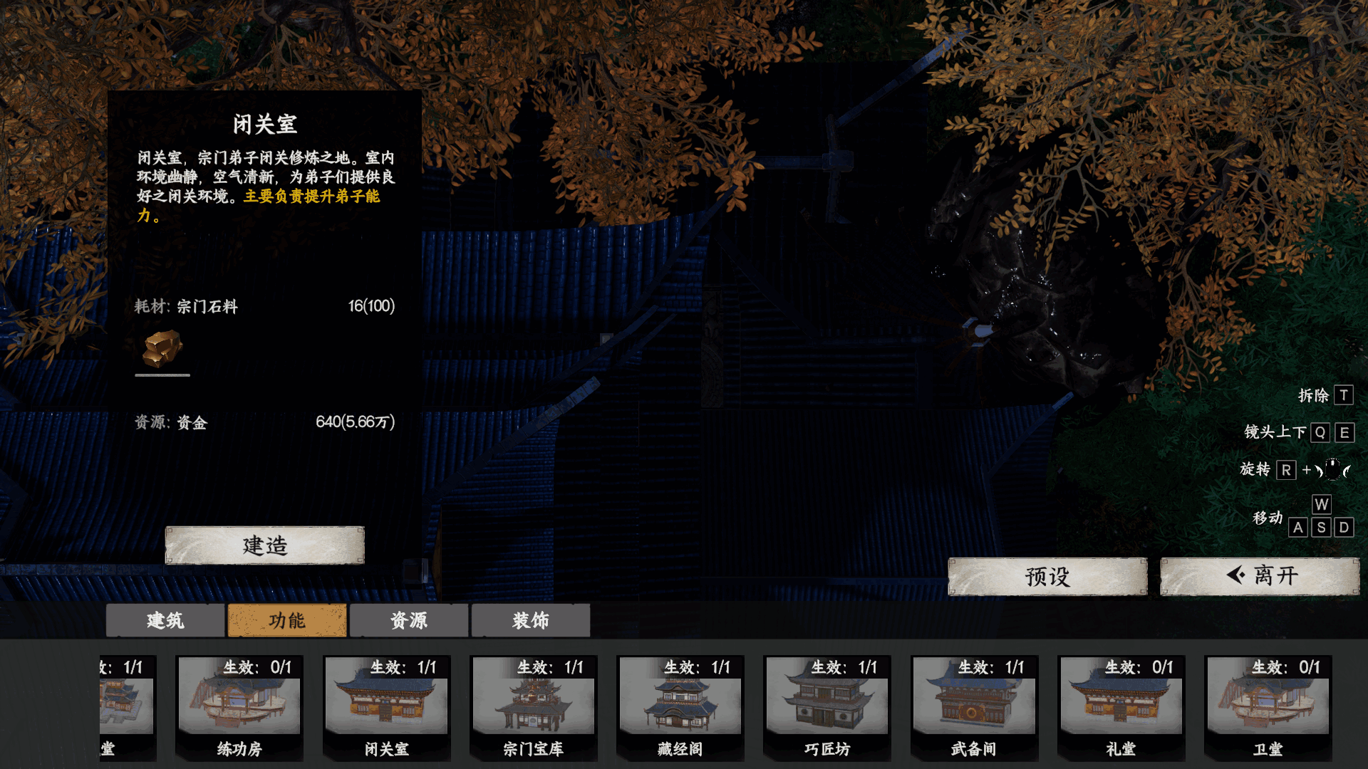 繁荣度可以建造昌瑞楼派遣门人完成任务增加