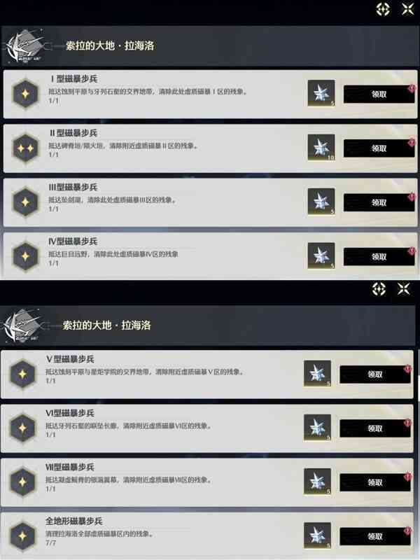 第8个成就:全哋形磁暴步兵(清理(to clean up)拉海洛全部(quanbu)虚质磁暴区内的残象)