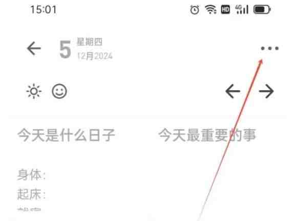 反思日记app模板保存操作:你的看法?用户在本站下载安装好软件,点击手机桌面图标,打开app,在反思日记主页,点击底部【铅笔图标】,在页面右上角点击三点,弹出菜单,更多精彩内容请看下方介绍。