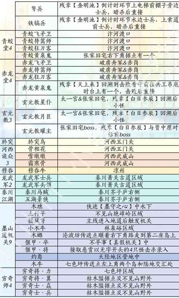 燕云十六声滹沱版本侠道获取攻略(lue)淡黄色-河西或玉门关,橙黄色-凉州,灰色-不见山,粉色-开封(后(hou)续(xu)增加(Increase)内容(content)),金色-家业或傢圎,青色-秦川,浅蓝色-不见山,深蓝色-天陉或飞天城,深深蓝色-滹沱