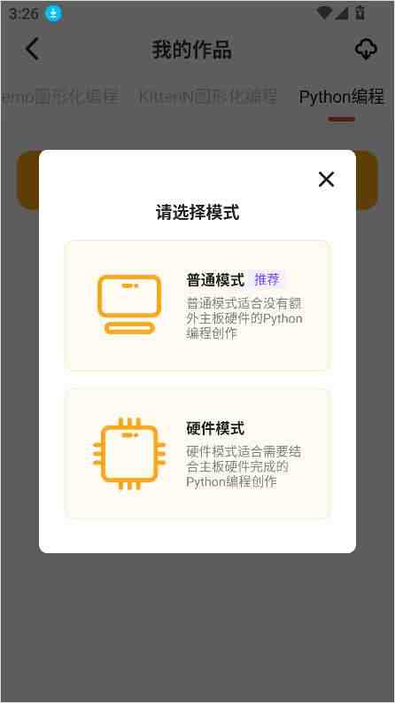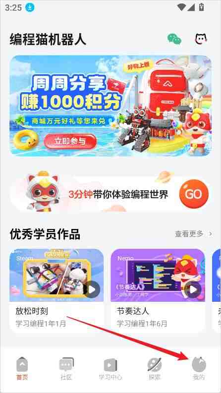 编程猫机器人app游戏制作教程打开编程猫机器人App,点击右下角【我的】,在个人中心中选择【学习作品】,进入后可以看到多种分类,这里以Python为例,更多精彩内容请看下方介绍。