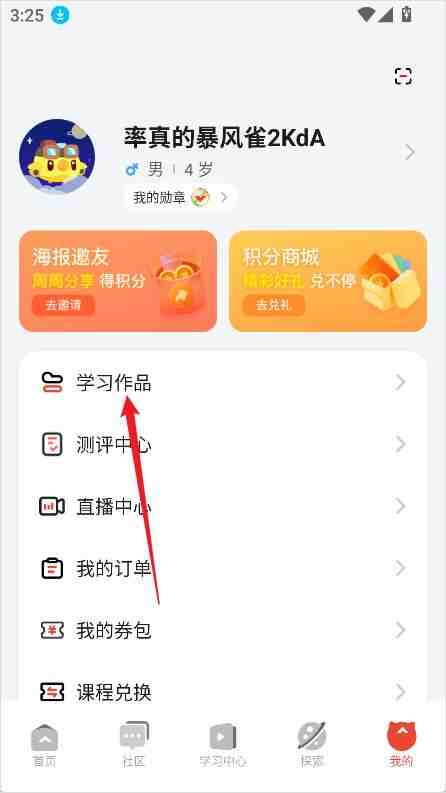 2、在个人(personal)中心(center)中选择(ze)【学习莋闆】。