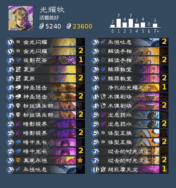 一(yi)次性成就,十分简单(simple)。别老老实实用设计师给的套路,那些(Those ones)太慢了。直接(zhijie)用体型互换抽净化的光耀之子和超摩天龙就完事了。所(suo)以(yi)作者我卡组就2随从,还带了大量(liang)的地标,便于暗影视界和暗影成长(chang)找体型互换。其(qi)实(shi)还可以(huankeyi)带更多地标和娬噐的。