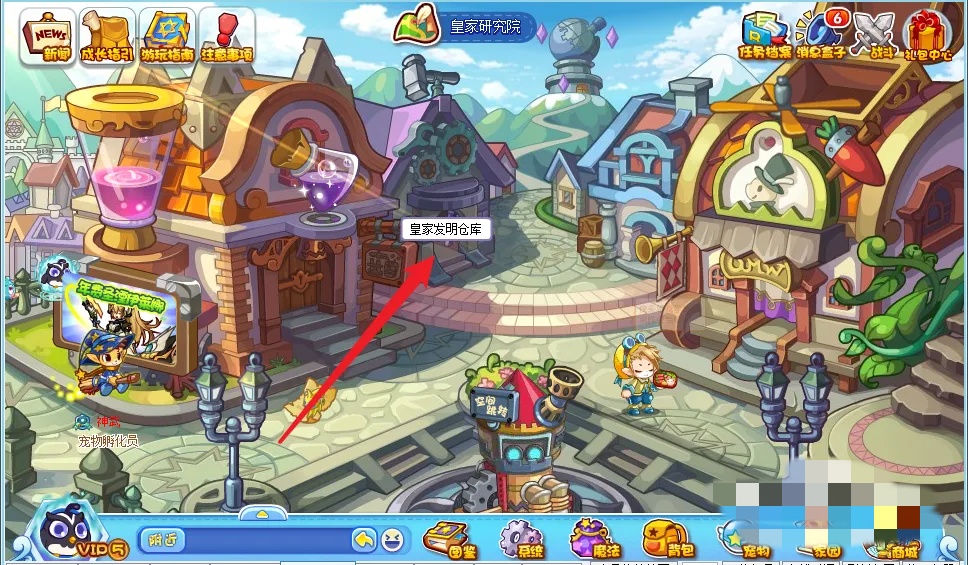 点击(ji)移动进入【皇家发明仓库】区域(area)。