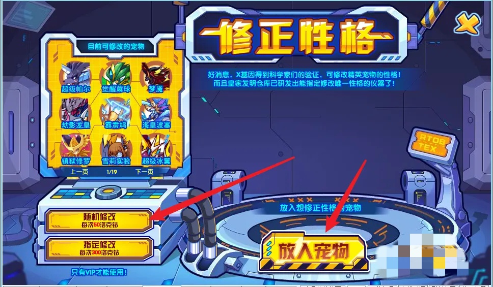 点击(ji)放入宠物按鈕,放入需要修改性格的宠物,点击(ji)修改按鈕即可。