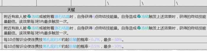 多人命中都不会浪费回能,控场加上(shang)回能可以一箭双雕,另外还会有连携技能凿孔底钓术,在敌人的脚下面会直接开一个(one)洞,不仅会造成伤害回技能,还可以掉到钓珍鳞,要是运气比较好的话,那就会让伤害迅速的加倍,搭配潜能三,愿者上钩,全队都可以增加(Increase)15%的攻击力,具有持续10秒的时间,团队的增益效果可以直接拉满。大鳞,上钩!这就是终结技能,更是一个(one)大範圍的杀招,在砸下去之后可以造成寒冷杀。潜能是可以减少15%的能量需求,潜能5打半血以下的目标,所造成的伤害就可以直接翻倍到1.5倍。