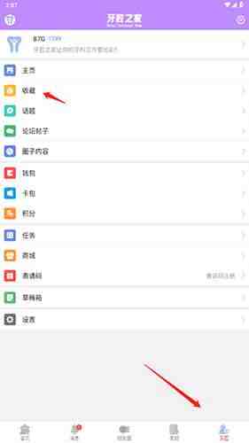 1、打(da)开(kai)軟件,点击(click)【牙匠】选项(options),然后点击(click)【收藏】选项(options)。