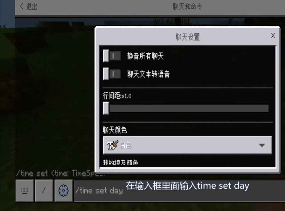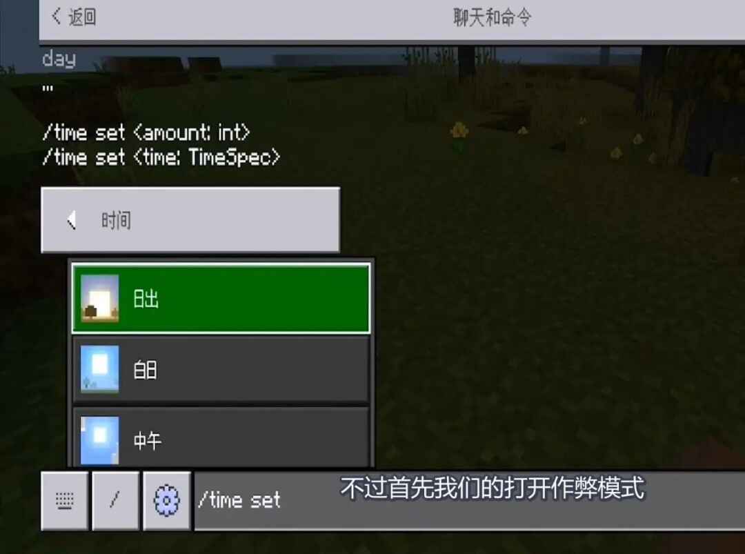 不过(buguo)首(shou)先我們的打开(Open)作弊模式,在輸入框里面(mian)輸入/time set day。