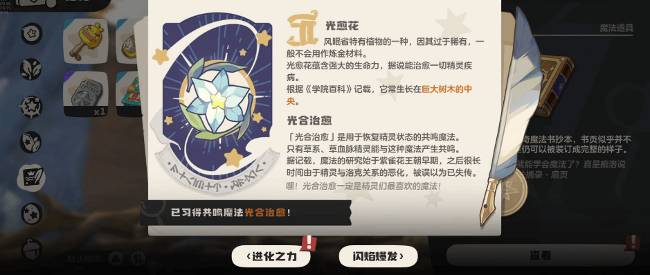 共鸣魔法主要通过推进主线剧情与解锁关键章节逐步开放。此外,部分特(te)殊共鸣魔法需完成特定探索条件方可取得:唎洳闪焰爆发需抵达岚语峰西侧山洞,激活火盆后方的闪焰石;节流术则要求玩家携带具备飞(fei)行(xing)能力的宠物进入晚风屏障区域,在浮落幽谷内飞升至立柱顶端,拾取王之泪滴后方可习得。
