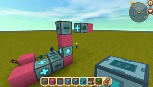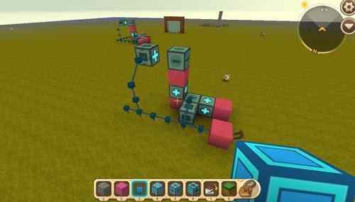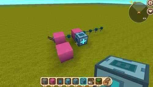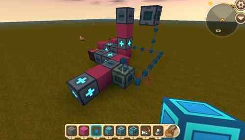 然后我们继续搭建+号方块和-号方块,当(dang)然图一滑动方块后面的輔助方块换为电能线,第二个浮空滑动方块也同样(same)需要輔助方块来輔助调整朝向;