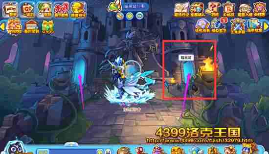 點擊进入会到(dao)达(da)暗黑城外围,點擊城堡两边发光的地方(fang),點擊进入即(ji)可(ke)到(dao)达(da)暗黑城。