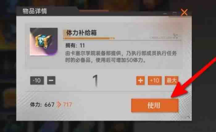 体力补给箱这个道具用起来很简(jian)单,点击使用按钮就行。使用之后会立刻恢复一定数量的体力值,这样就可以继续进行游戏了。体力在这个游戏里面(limian)用处挺大的,做任务打副本都需要消耗(consume)体力,所以记得及时使用补给箱。