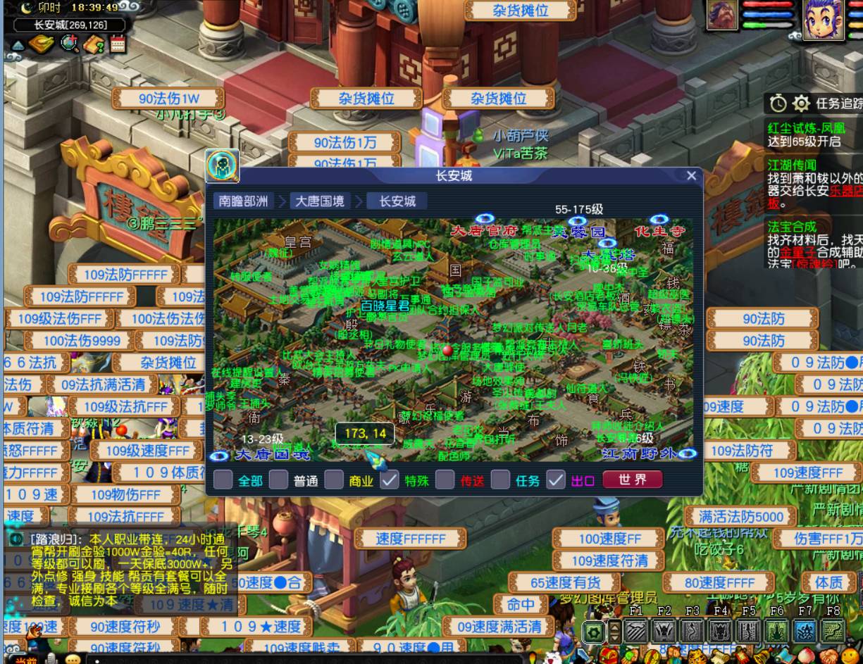 1、登入梦幻西游,找(zhao)到长安城(173,14)。