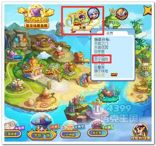 洛克王国双子庭院在什么位置在世界地图中,洛克王国双子庭院在什么位置选择天界地图点击进入,选择点击“天宫之门”,在小地图中,选择双子庭院就可以进入了;第二种方式,在世界地图中,点击右下角的找宠物/场景按钮,再选择找场景按钮,更多精彩请看下面。
