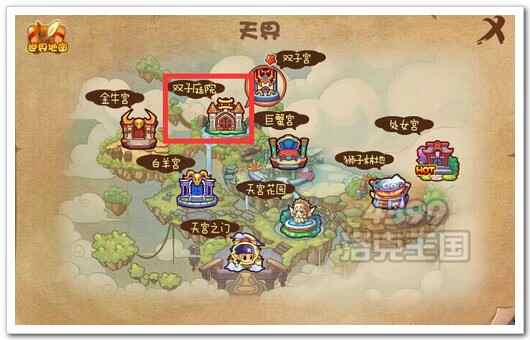 选择(hoose)点击(ji)“天宫之门”,在小地图(map)中,选择(hoose)双子庭院就(jiu)可以进入(jinru)啦~