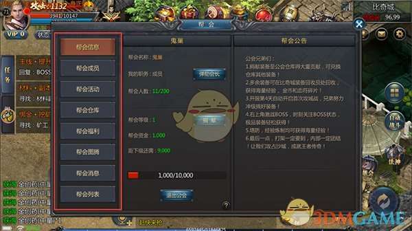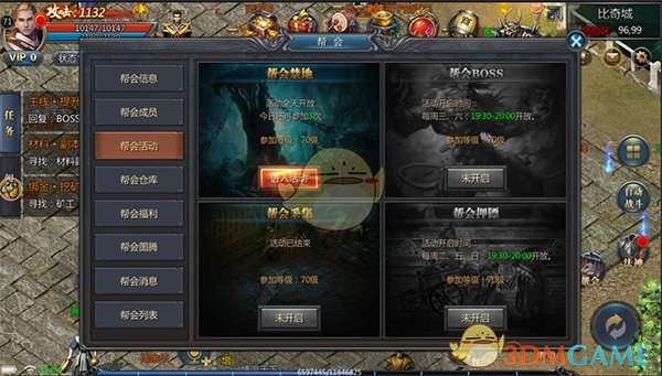 4、点击帮会活动,参(can)加(jia)活动可(ke)以(yi)获(huo)得(de)大量奖励和帮贡哦!
