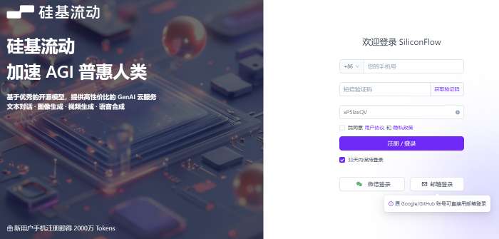 硅基流动官方网站入口:https://account.siliconflow.cn/zh/login