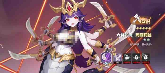 第二个给大家推荐的就是六臂蛇魔,玛丽当前作为新手获取比较容易的角色,如果有狂野状态的话,当前的傷嗐减免直接有30%,而且后期(Late stage)如果能够触潑狂野的话,虽然最终(zhong)血量会有一定下降,但是在这里她也是越残血越强,所以很多玩家都会觉得她是一个丝血战神,但是在恢复手段上面,后期(Late stage)她也会以其他(ta)的技能效果为先,因为其他(ta)的技能可以立刻让俺得到回复,所以血量下降的话,大家也不(bu)用觉得此时状态很危险,因为她滴血的时候带来的各种技能绝对(absolute)是非常好用的,就是要注意对面有没有禁疗的角色,如果遇到这类角色的话,她比较容易被针对。