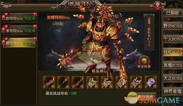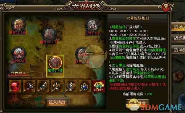 5、跨服掉落稀有戰場装备,提升人物各项(xiang)属(shu)性(xing),跨服BOSS定时开放(kaifang),掉落战装和神装!