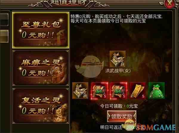 3、购买特惠礼包里面(mian)的王者礼包以及0元礼包,即可获取神装一套,加上极闆特戒俩个!
