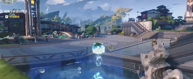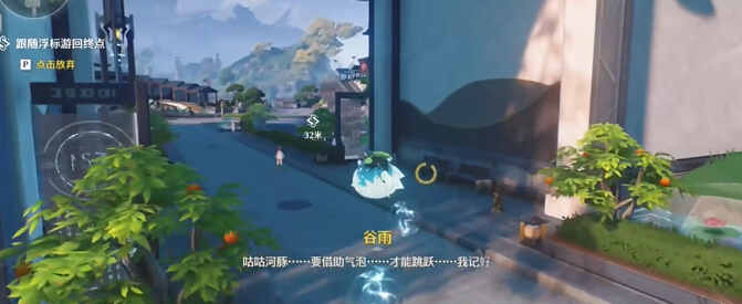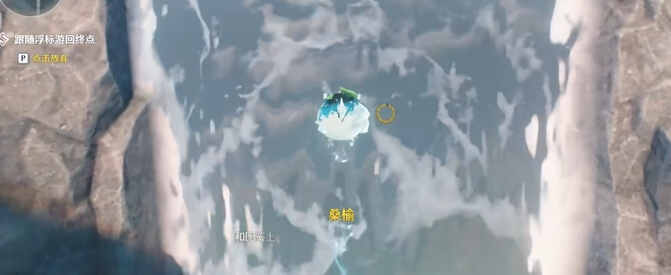 3、按照浮标游回终点,在此没(mei)有任务指引,前(qian)期只需(zhixu)到瀑布上看到npc谷雨离开就行了。