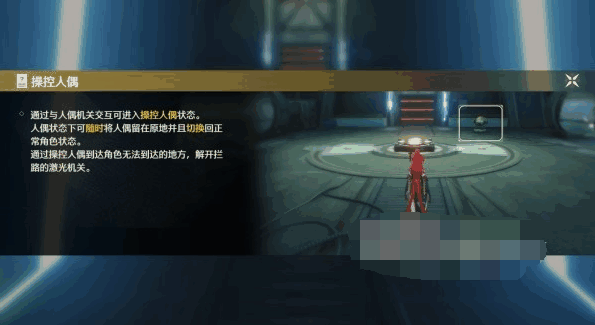 2、与机关互动,操控人偶踩住房间内的压力板,然后切换回角(jue)色(se)穿过激光,完成教学。