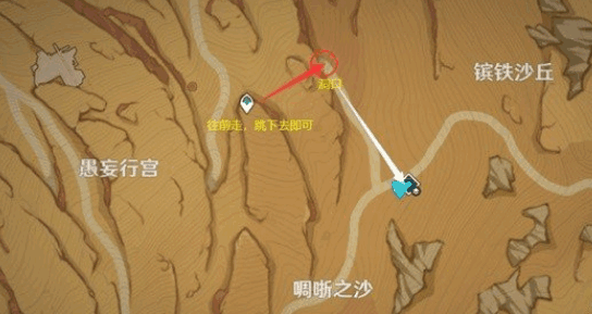 1、从愚妄行宫右边锚点,往东北方向走,往下跳;
