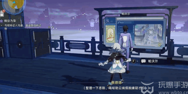 8、结束对话之后传送到玄机坪的位(wei)置(zhi),来获得到图下五个人的证词【帕沃尔、公输师傅、怀炎、宝箱中的剑、云璃】。