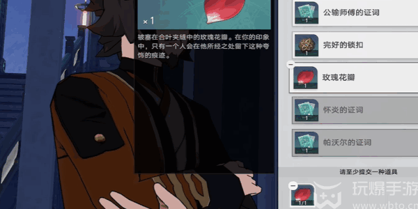10、获得到证词之后,就要求和这个(zhege)大毫进行激辩,再等大毫讲完之后,就可以拿出第一个证据【玫瑰花瓣】,就可以辩胜了。