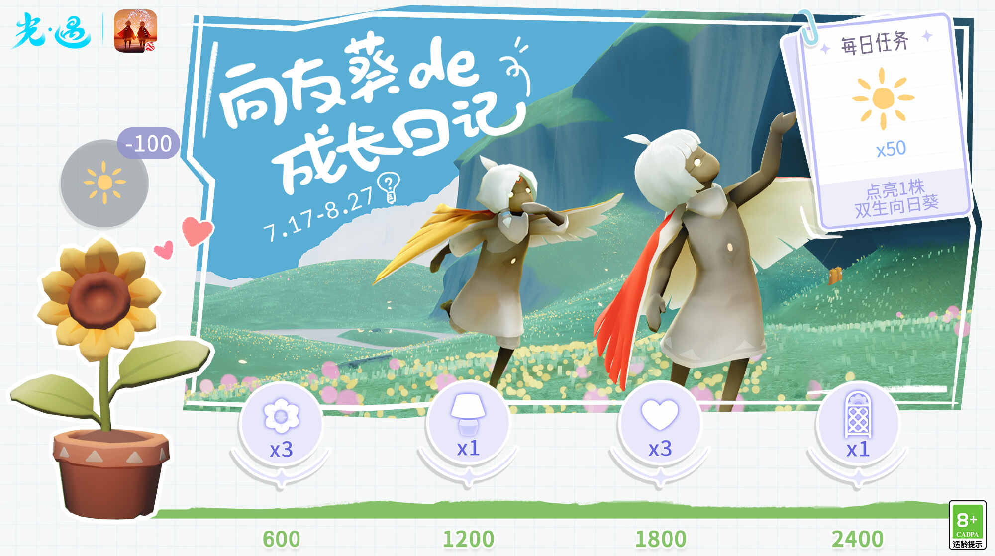 累计3天和陌生人①起坐在向日葵长凳上,可获得(kehuode)阳光*100、爱心*2