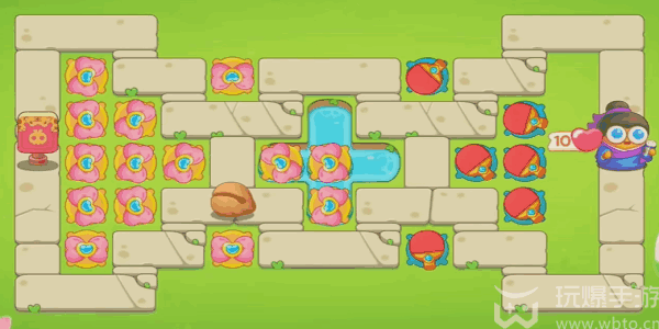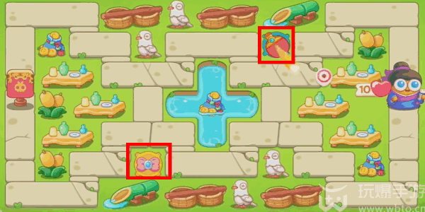 1、先在标记好的位置上建造上球拍和蝴蝶结,来清理障碍物和小怪。