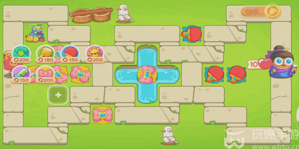 保卫萝卜4浪漫七夕第8关通关攻略(lue):1、先在标记好的位置上建造上球拍和蝴蝶结,来清理障碍物和小怪。