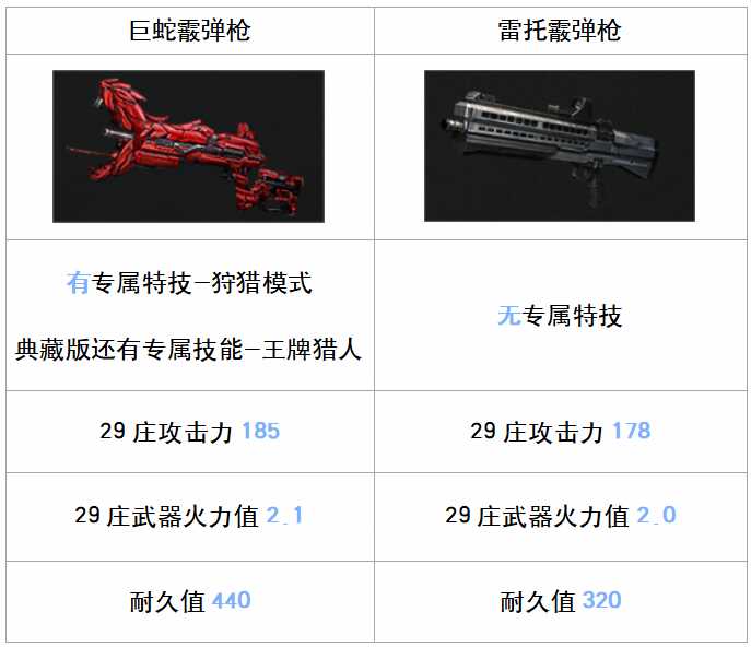 对比可以看出巨蛇霰弹枪的专属特技(teji)为战斗增添不少威力(power),雷托霰弹枪虽无特技(teji),但也十分(shifen)强势。